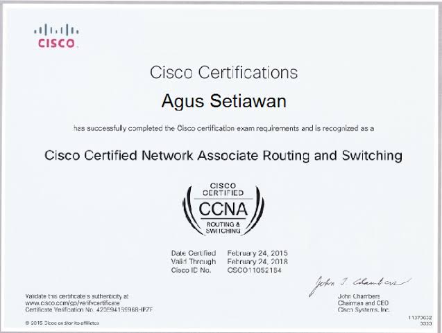 Dari beberapa sumber tersebut dapat disimpulkan bahwa sertifikasi CCNA adalah, singkatan dari Cisco Certification Network Associate, Yang dikeluarkan oleh Cisco sytem, dan siapa yang memegang atau mempunyai sertifikat ini di anggap